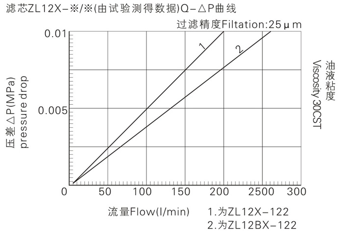 注:※為過濾精度,若使用介質(zhì)為水一乙二醇,過濾精度為10μm,帶真空表則過濾器型號為ZL12.BH-122/10Y濾芯型號ZL12X.BH-122/10。若使用介質(zhì)為普通液壓油,帶真空表則過濾型號為ZL12-122/10Y濾芯型號為ZL12X-122/10,若不帶真空表則過濾器型號為ZL12-122/10,濾芯型號不變。