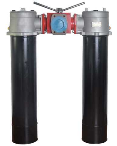 當一只過濾器的濾芯堵塞,致使進出口壓差為0.35MPa時,發(fā)訊器發(fā)訊,這時,轉(zhuǎn)動換向閥,使備用濾油器工作,然后更換已堵塞的濾芯。
