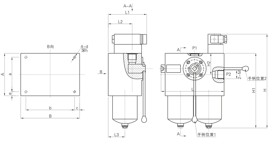 | 型號(hào) | H | H1 | H2 | L | L1 | L2 | A | a | B | b | M | d | h | c | e | L3 |