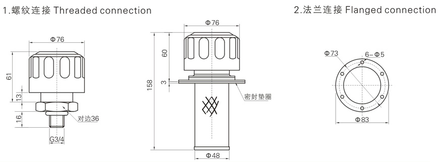 | 連接方式 | 螺紋 Thread (G 3/4") | 法蘭(6只M4 X16) |